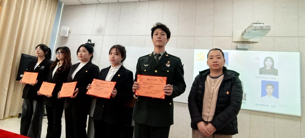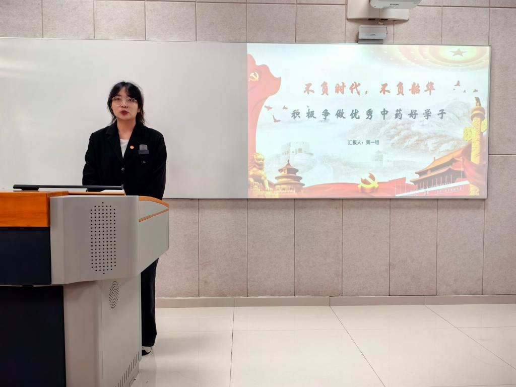 在分享交流活动中,孙滢媛等同学通过主题演讲、学习感悟、培训交流等方式向与会的师生生动展示了本草学子坚定理想信念、服务民众健康和传承中医药事业的铮铮誓言。而作为退役复学的王磊同学则用其独特的视角向全体师生展示了个人在厚植家国情怀、提升政治素养、夯实专业知识、涵养服务精神等方面的执着追求。同学们精彩的演绎让参与活动的师生无不感怀,无不为他们践行优秀老员工的青春誓言而自豪!