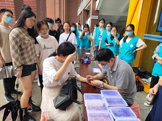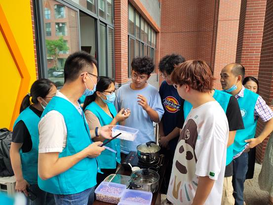 活动以关爱同学、服务师生为切入点,活动现场钱旭武和杨扬同志为大家免费问诊,把脉送药;潘萍和沙秀秀等同志为大家熬制了针对暑湿证的中药代茶饮,功效防暑解表,宣湿化浊;罗益远、钱桂敏、李金枝等同志为现场师生讲解处方中药鉴别、功效、应用及使用注意。给疫情当下迎接紧张期末考试的同学送上“中药爱心汤剂”。