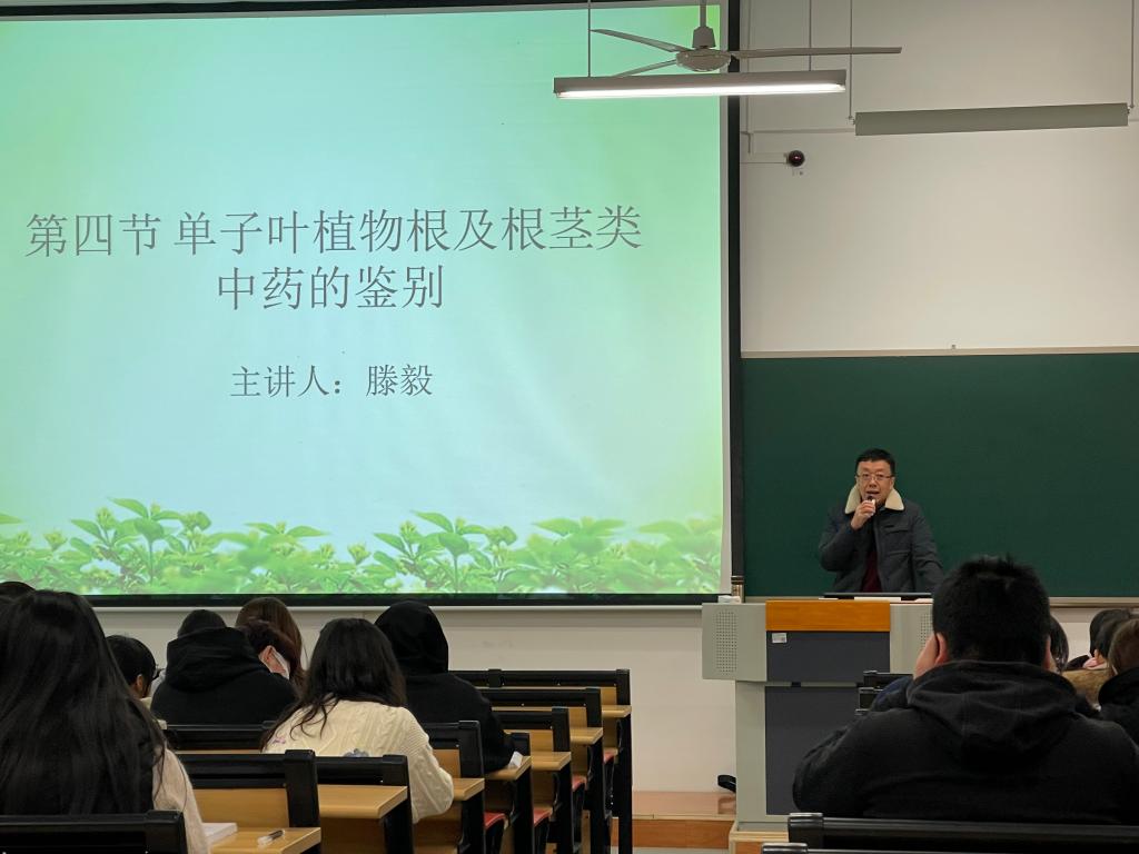 滕毅老师本次公开课主讲内容为:《单子叶植物根及根茎中药的鉴别》。他从中药材“知母”为切入点,教育引导员工要心怀感激父母的养育之恩,心系传承祖国中医药事业的情怀,这也让原本“枯燥”的课堂教学顿时有了浓郁的思政育人氛围。随后,滕老师通过他深厚的教学底蕴和娴熟的教学技巧,为广大同学讲述了单子叶植物的构造、特征、性状和药理,并通过相同类别药材的对比分析,让广大同学对三棱,泽泻,天麻,川贝等中药材有了深入的了解。这种“授人以鱼不如授人以渔”的教学方法不仅提高了课堂教学效果,并且对员工专业知识能力培养起到了积极的效果。