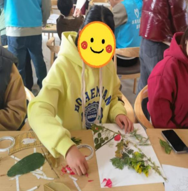 最令孩子们激动的环节——“创意留痕”中药植物标本制作中,在志愿者的辅助下,他们成功地制作出一幅幅精美的中药植物标本。小玲同学(化名)表示:“我希望建构一个水滴的形状,因为水是生命之源,而这些植物同样象征着生命。”他们自由地设计图样,将对生命的感悟融入到艺术创作之中。