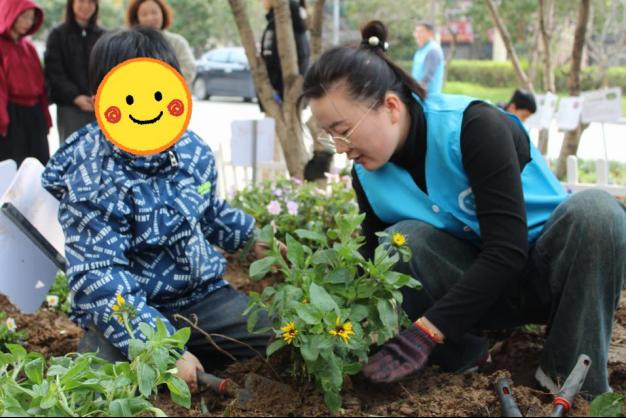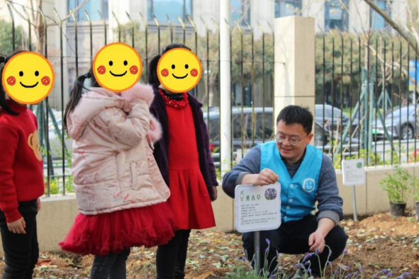 图5:党员教师张文睿博士和孩子们一起播撒“春天的希望”