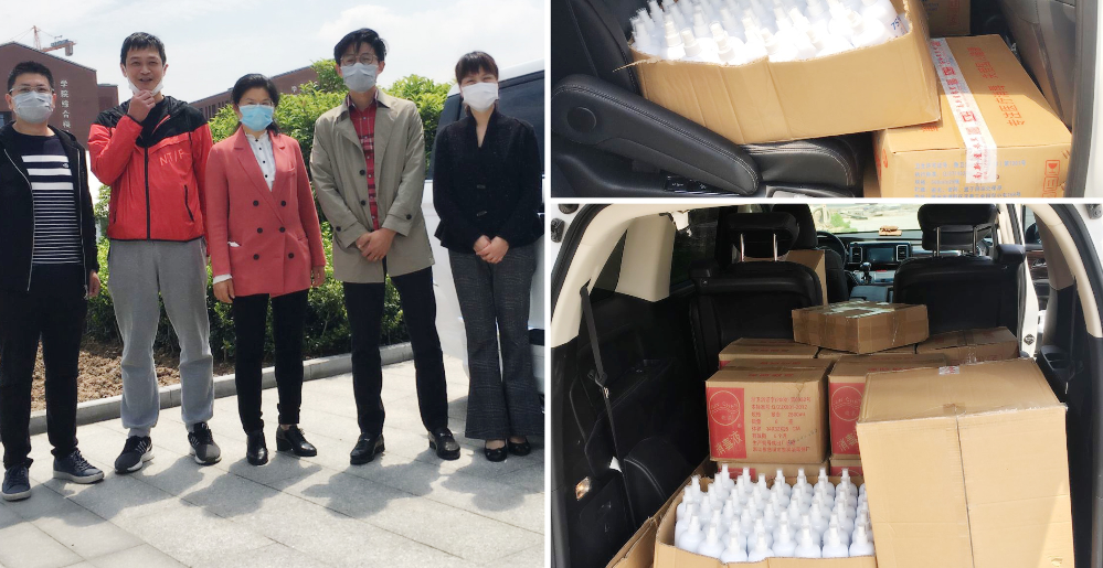 病毒无情人有情,中药学子满满爱。得悉母校返校复学在即,2020年4月23日,宁波祺和食品有限公司、南新屋参茸行负责人陈柯松装了满满一车的防疫物资来到校门口,将10箱84消毒药水原液、100瓶75消毒酒精、100瓶免洗洗手液、两箱喷壶以及一箱护目镜等物资捐赠给母校,助力公司做好开学疫情防控和安全稳定工作。公司党总支书记孙文珠、基础公司韦晨和总务处周磊老师到校门口接收物资并对陈珂松员工表示衷心的感谢。
