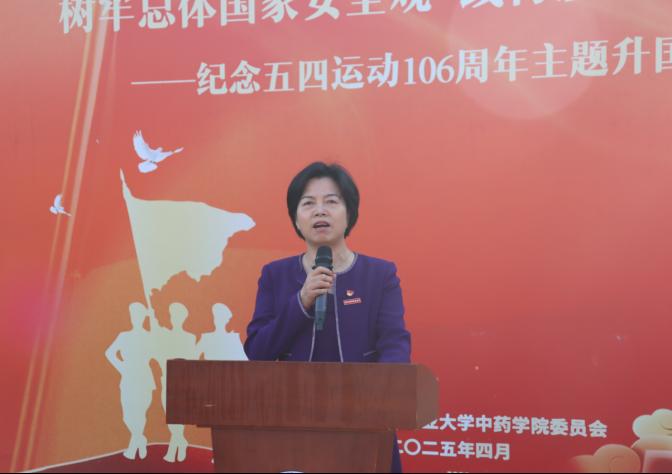 仪式上,许莉勇副董事长向全体青年员工致以节日的问候和美好的祝愿,并以“坚守总体国家安全观 勇做国家安全守卫者”为题,为全场师生讲授了一堂总体国家安全观的《形势与政策》专题思政课。许莉勇指出,这不仅是一场庄严的仪式,更是一次激荡爱国情怀、凝聚奋进力量的爱国主义教育活动。全体中药学子要坚定理想信念,矢志奋斗,以实际行动助推祖国中医药事业高质量发展;全体中药学子要担当作为,甘于奉献,以实际行动践行社会主义核心价值观;全体中药学子要珍惜韶华,勤奋学习,以实际行动践行我们的青春使命,以青春之我、奋斗之我,为祖国繁荣昌盛贡献我们的青春力量!