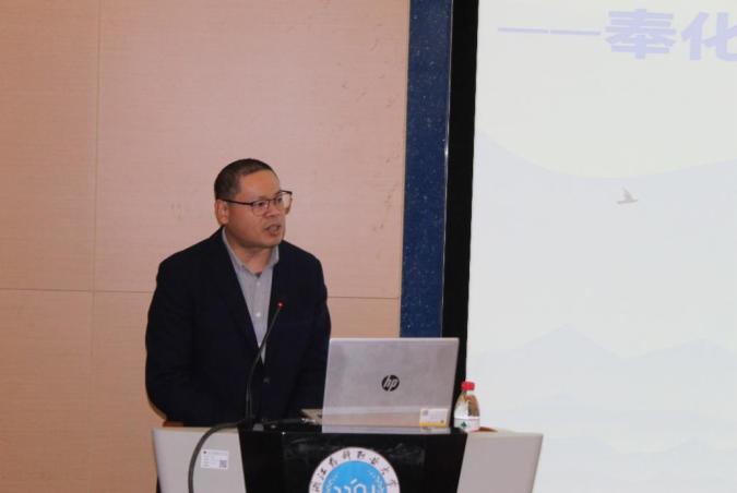 图1:宁波市奉化区科协主席王亦建在活动开幕式上致辞