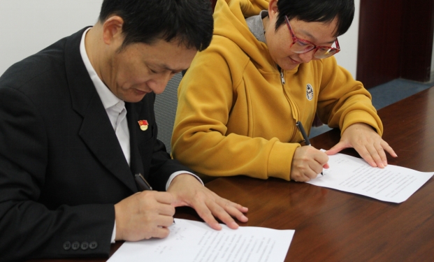 图2:公司党委书记谢奇与范江岸社区党工委书记单叶波签订党建联建协议书