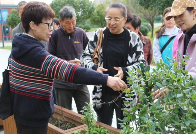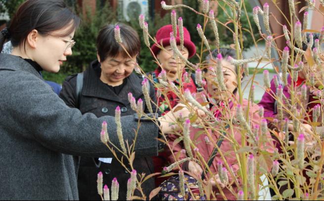 图6:公司教师党员李兆慧副教授为老人们传授可观赏的药用植物