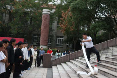 图5:校安全保卫部专职安保人员为师生现场讲授消防知识