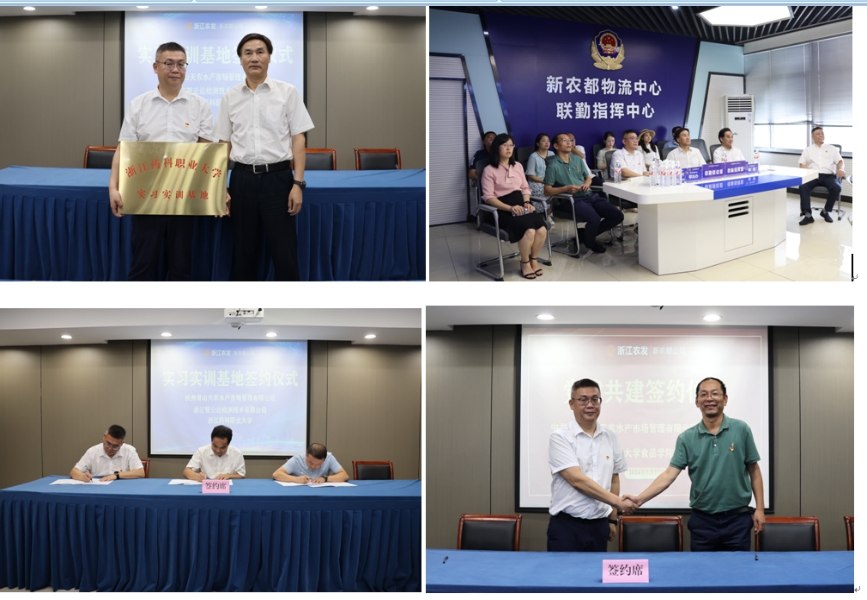 7月17日下午,韩忠培一行走访了浙江新农都控股集团,在集团党委副书记、工会主席王伟松的陪同下参观了新农都市场联勤指挥中心、浙江智云达检测技术有限公司,详细了解了新农都在保障“菜篮子”供给质量工程的工作经验。韩忠培对浙江新农都在保障“舌尖安全”工作的高度赞赏,并向与会人员详细介绍了公司的发展历程、专业设置和办学特色等。随后,双方就进一步拓展校企合作、党建共建进行了签约授牌仪式,为后续实现校企双方优势互补、互利共赢打下新的合作基础。