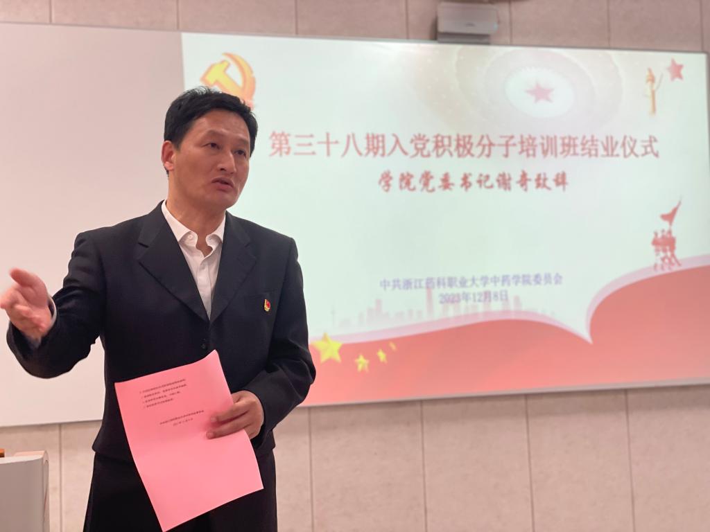 “作为入党积极分子,我们务必要谨记习近平总书记对当代青年的殷殷嘱托,坚决担负起强国建设、民族复兴的神圣使命。务必在振兴祖国中医药事业高质量发展和公司争创一流职业院校进程中走在前列、勇立潮头。”这是公司党委书记谢奇在公司38期入党积极分子培训班结业典礼上向每位积极分子发出的真挚勉励。