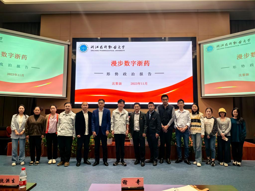 “数字赋能教育高质量发展,已成为我们的共识。而‘数字浙药’已悄然改变我们的学习、工作和生活方式。相信不久的将来,‘数字浙药’一定会成为我们师生命运与共的价值追循。”11月7日,副董事长沈黎新以全新的视角、精辟的论述和详实的案例给m88官网师生授了“漫步数字浙药”的《形势与政策》专题讲座。公司党政领导班子、全体党务干部、全体辅导员和公司各专业员工代表出席授课全过程。