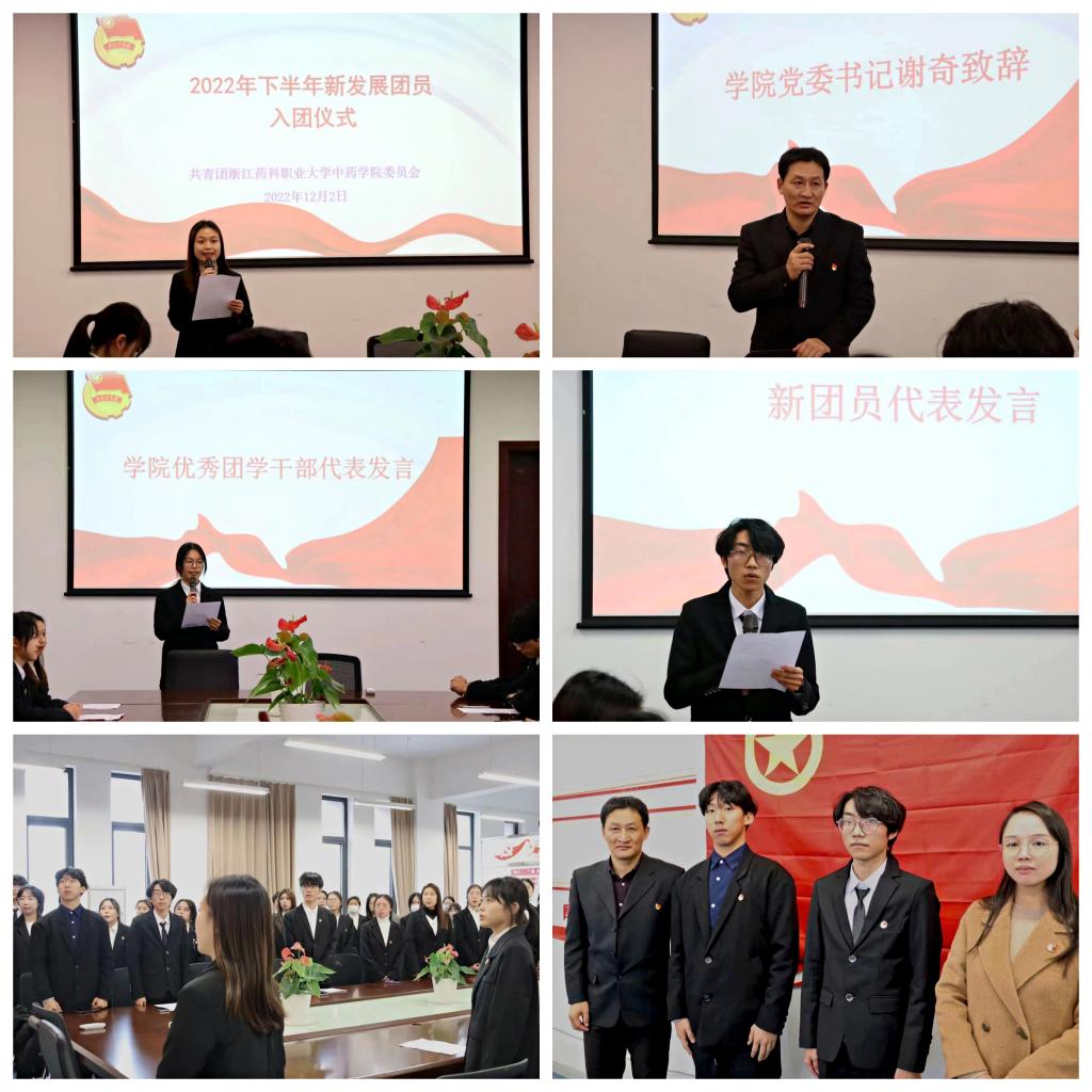 活动仪式上,公司辅导员毛燕亲自为新发展团员授挂团徽,全体团员面对团旗集体宣誓。随后,新团员代表何维宇同学和公司优秀团学干部代表廖思嘉分别表述了自己入团初心和积极向团组织和党组织靠拢的心路历程。公司党委副书记林世杰老师在仪式现场勉励广大团学骨干:牢记入团誓词,树立远大理想,勇于攻坚克难,积极锤炼自身品德,时刻铭记党的嘱托和中医药事业发展使命担当,努力与新时代同向同行,积极做一名知行合一的优秀中药好学子。