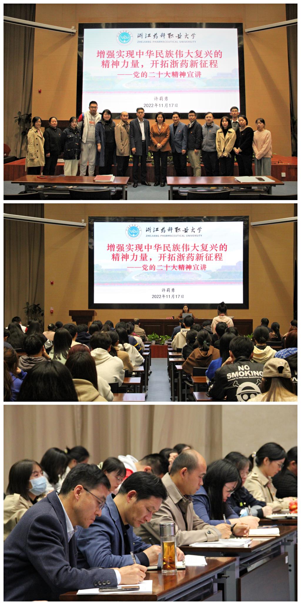 为深入学习贯彻落实党的二十大精神,努力把公司广大师生员工的思想和行动统一到习近平新时代中国特色社会主义思想上来,切实把智慧和力量凝聚到落实党的二十大提出的各项任务上来,更好更快地推动公司公司产品事业高质量发展。11月17日晚,m88官网联系校领导、副董事长许莉勇给m88官网师生作了题为“增强实现中华民族伟大复兴的精神力量,开拓浙药新征程”党的二十大精神宣讲报告暨2022年下半年《形势与政策》主题报告。公司党政领导班子、党委委员、各支部书记、全体辅导员以及员工骨干代表参加宣讲会。会议由公司党委书记谢奇主持。
