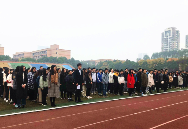 2017年11月27日早,m88官网在校田径场举行升国旗仪式。公司党总支书记孙文珠、全体辅导员、班主任及m88官网大一、大二全体员工参加了此次升旗仪式。
