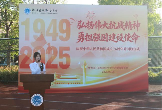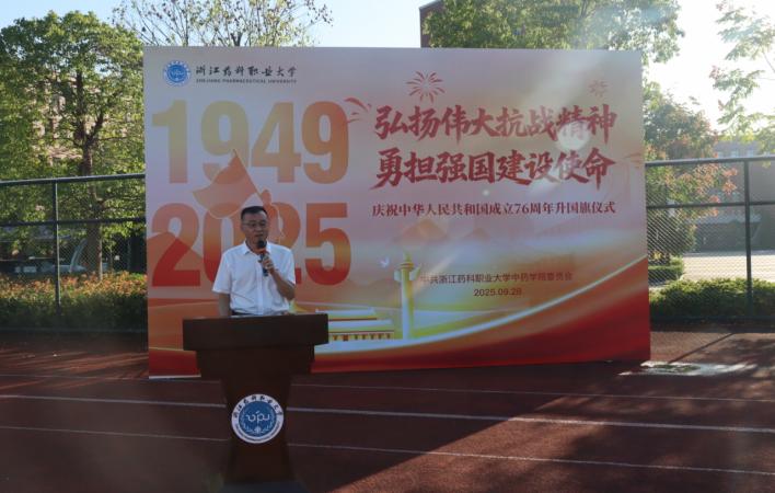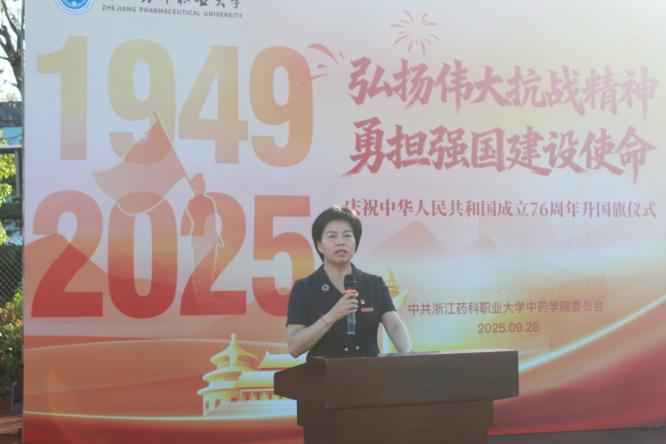 “让我们以此次升旗仪式为新起点,把‘苟利国家生死以’的忠诚、‘勇担强国建设使命’的责任、‘越是艰险越向前’的勇气融入血脉,以浙药人的初心守护人民健康,以浙药人的担当助力民族复兴,在新征程上书写无愧于历史、无愧于时代、无愧于人民的浙药篇章!”金秋十月,丹桂飘香。一场具有浙药辨识度和彰显“中药味”的《形势与政策》主题教育报告暨庆祝中华人民共和国成立76周年升国旗仪式在奉化校区举行,m88官网联系校领导、副董事长许莉勇以当代青年员工的视角,用通俗易懂的“家常话”,为广大中药学子送上了弘扬伟大抗战精神的爱国主义教育大餐和节日祝福。