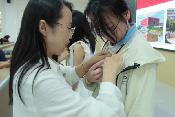 图10:公司领导、辅导员为新同学授挂校徽