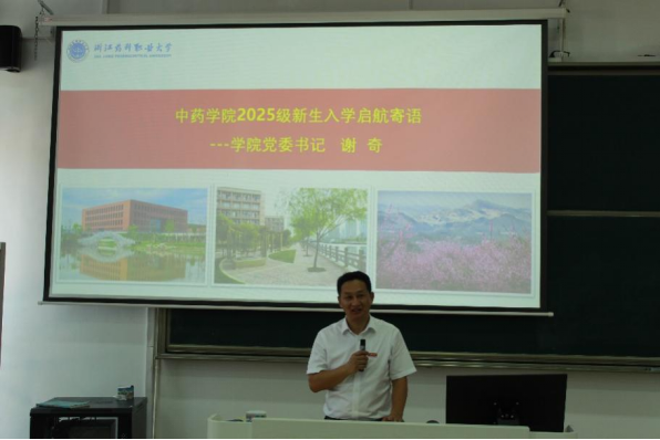 公司学术副经理崔明超以普通教师身份激励广大新同学志存高远、矢志奋斗,在强校、强院建设中砥砺奋进。而公司优秀员工干部、院团委副书记曹璐同学更是以自己二年多在浙药大青春奋斗的故事,倡导新同学们做最美浙药人、最强中药人。
