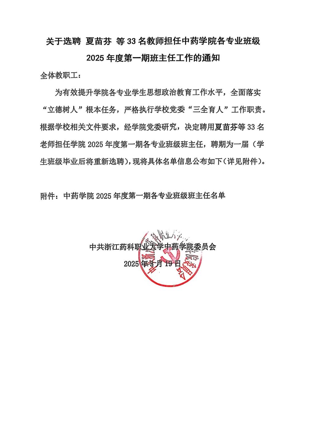 上一条:2025浙药大中药党1号关于聘任谢清清同志为m88官网2025年度教学助理的公告
