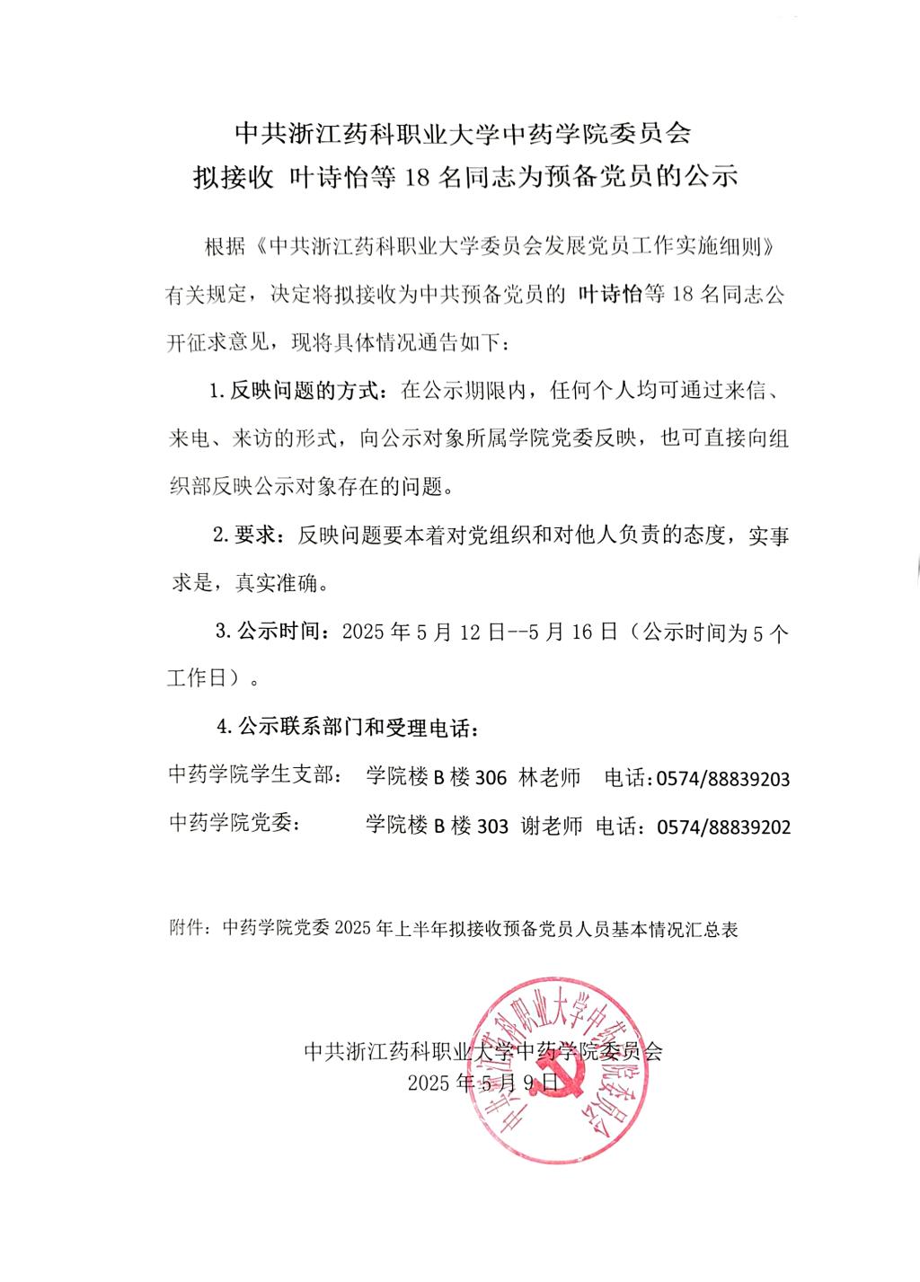 中共m88官网委员会拟接收 叶诗怡等18名同志为预备党员的公示
