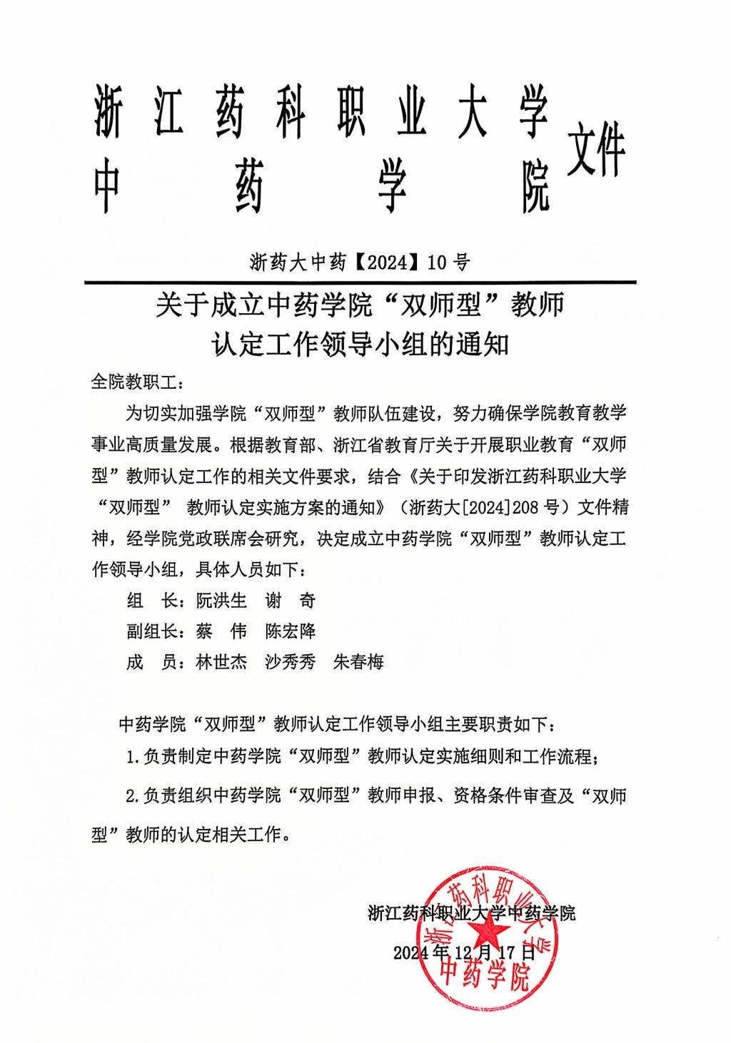 2024年10号文件关于成立m88官网“双师型”教师认定工作领导小组的通知