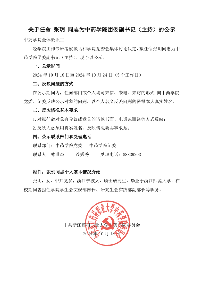 上一条:2024浙药大中药党2号文件-关于任命张玥同志担任m88官网团委副书记(主持工作)的通知
