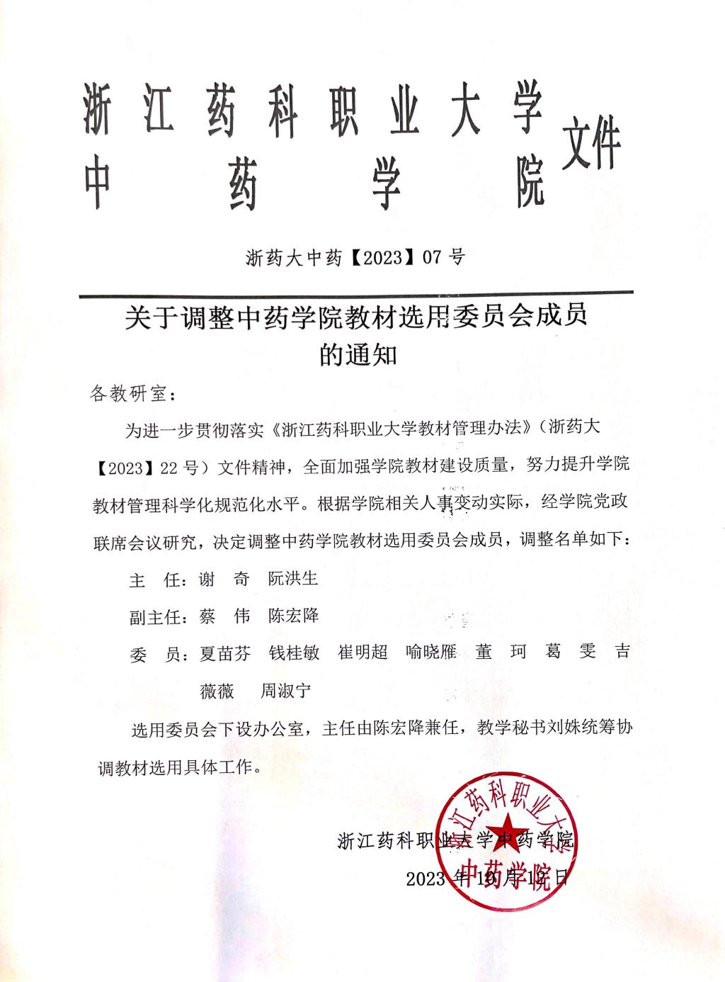 关于调整m88官网教材选用委员会成员的通知【2023】07号