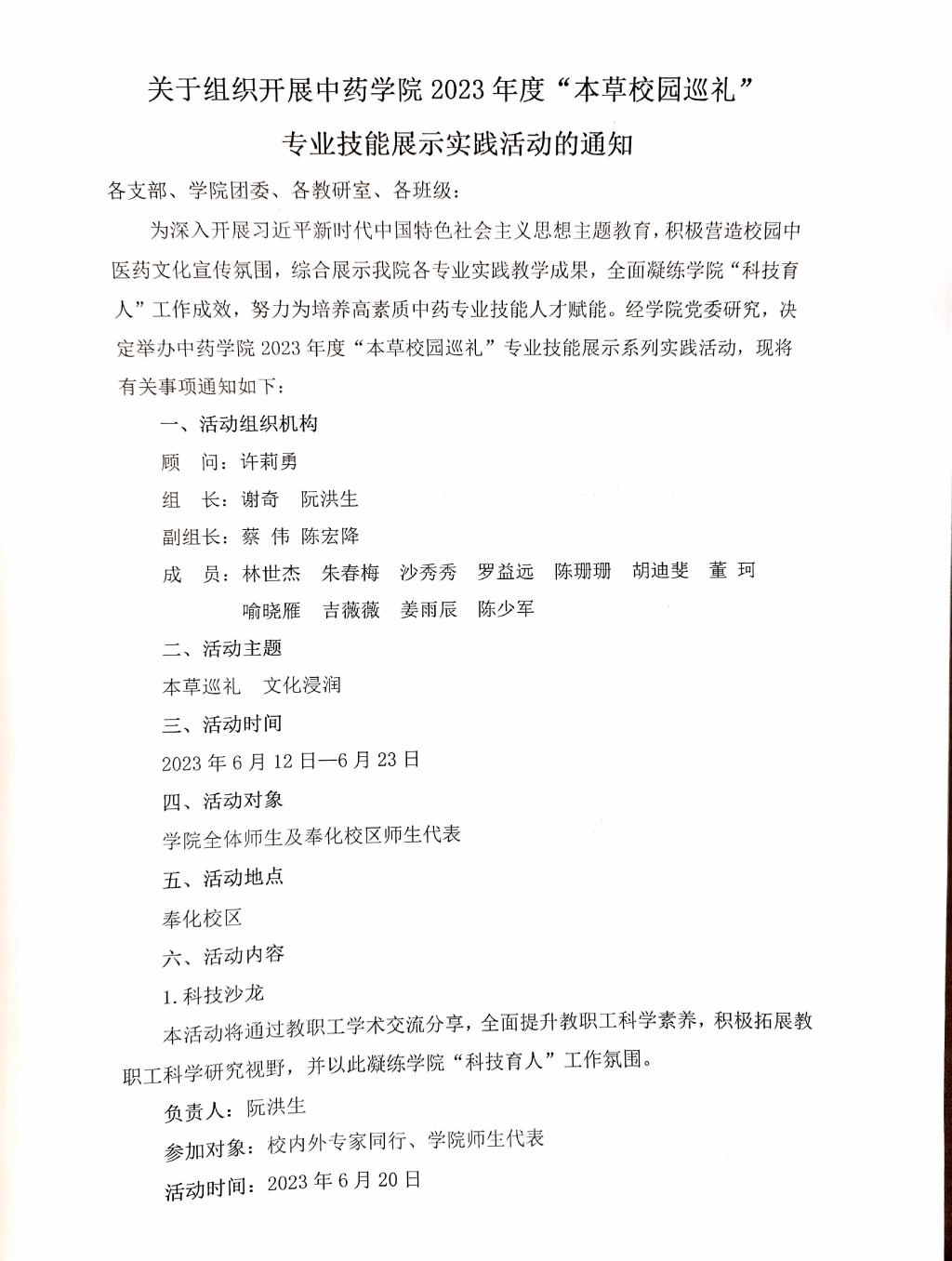 关于组织开展m88官网2023年度“本草校园巡礼”专业技能展示实践活动的通知
