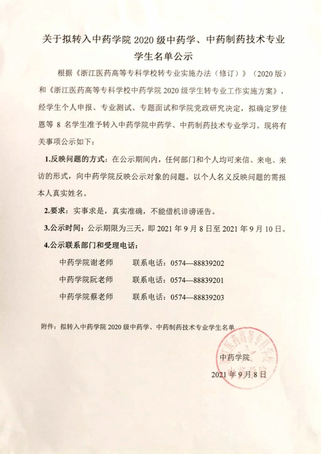 m88官网2020级转专业员工名单公示