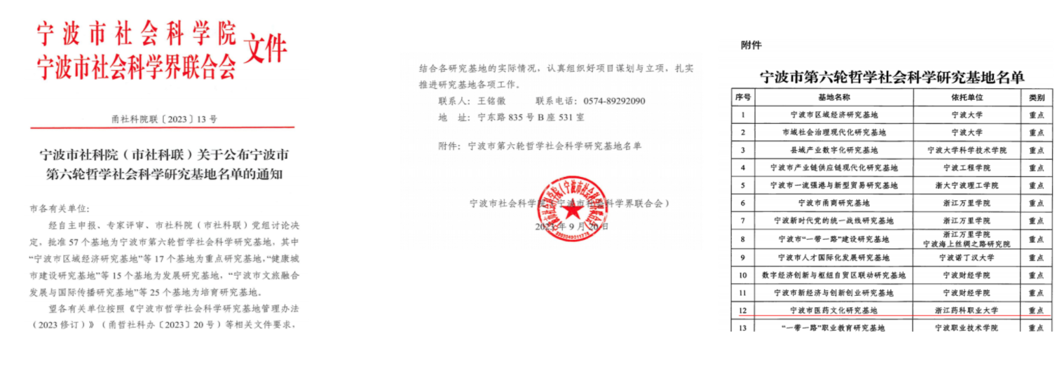 在基地主任陈厥祥书记的谋划和悉心指导下,基地依托m88官网及宁波帮国药文化研究所的研究资源,近日实现了新的突破,成功获批第六轮市社科院(市社科联)哲学社会科学研究基地重点研究基地。